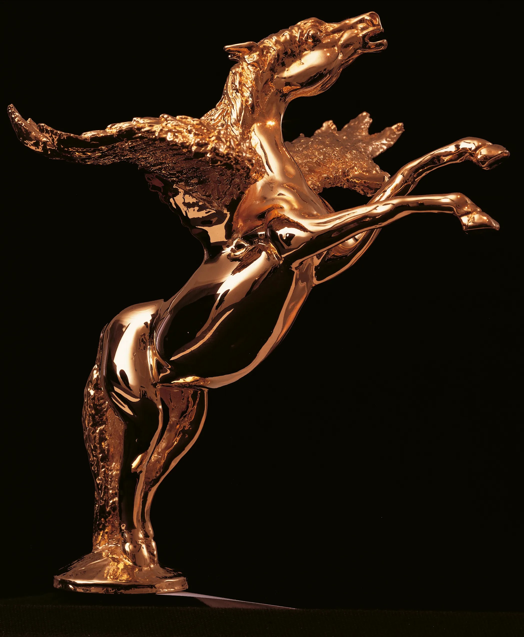 從任何角度看去,整架鋼琴都像一匹凌空翱翔的飛馬,完整地詮釋了馬到成功的美好意愿。完全打破傳統鋼琴的固有形象,兼具“鋼琴之神韻,飛馬之形態”。