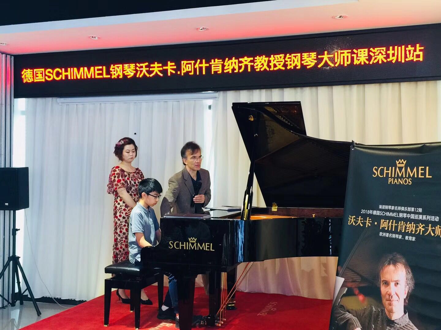 8月23日下午的大師班在深圳SCHIMMEL鋼琴專賣店舉行。沃夫卡導(dǎo)師出生于音樂世家,氣質(zhì)儒雅,教學(xué)經(jīng)驗(yàn)豐富,循循善誘,在大師班過程中耐心十足,引導(dǎo)學(xué)生慢慢體會(huì),情境式的教學(xué)引人入勝。