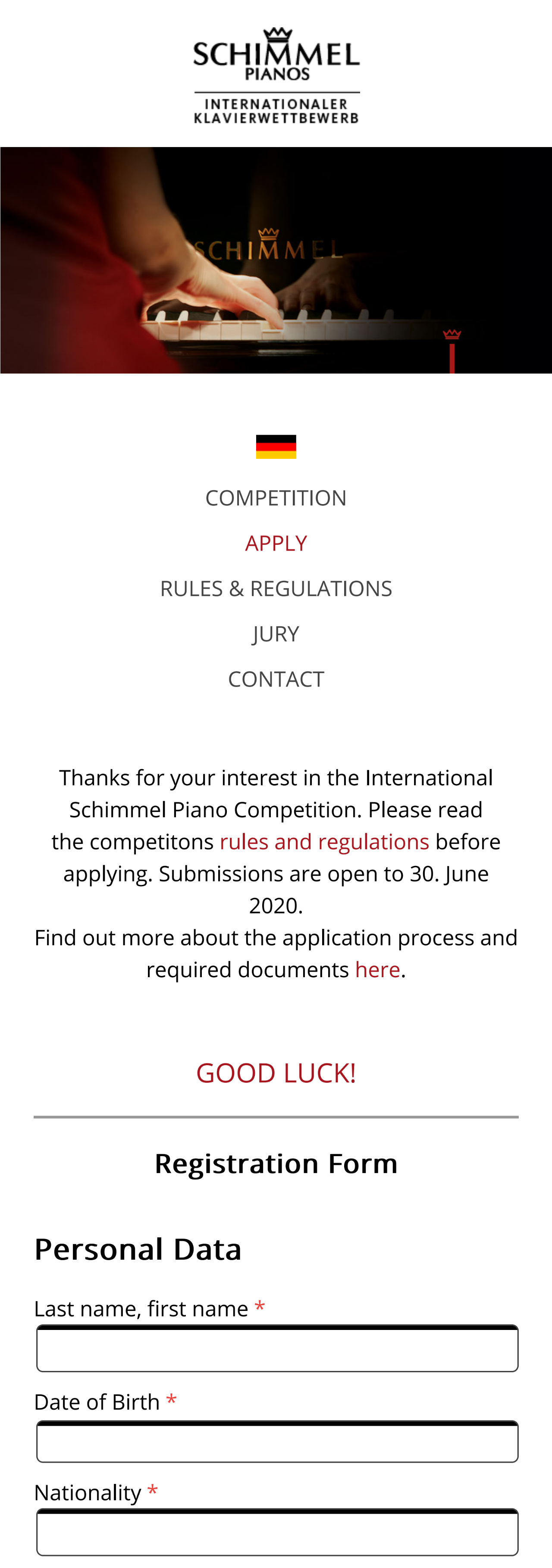 舒密爾國際鋼琴大賽報名網站由德國舒密爾鋼琴公司直接制作管理,為保證國際大賽的權威性,所有報名參加比賽的選手均需直接在大賽指定的網站上傳報名信息。