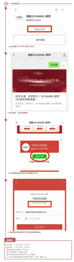 2020年是SCHIMMEL鋼琴135周年誕辰,風雨同路,感恩回饋,135周年慶與雙11狂歡同步來襲,舒密爾鋼琴將推出“百年禮遇,伴你同行”讓利驚喜,真心感謝一路陪伴舒密爾走來的朋友,回饋每一位喜愛舒密爾鋼琴的音樂愛好者。