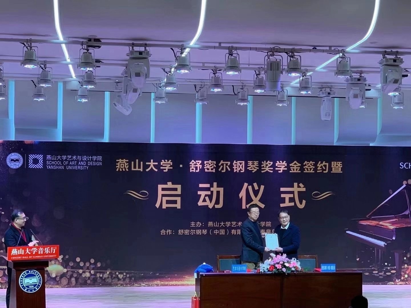 12月14日,舒密爾鋼琴獎學(xué)金啟動儀式在燕山大學(xué)隆重舉行。校方代表及舒密爾鋼琴(中國)有限公司 總經(jīng)理 莫源波先生及相關(guān)嘉賓出席該次活動。儀式上,雙方代表達(dá)成共識并簽署“舒密爾鋼琴獎學(xué)金”校企合作協(xié)議。
