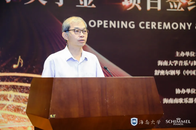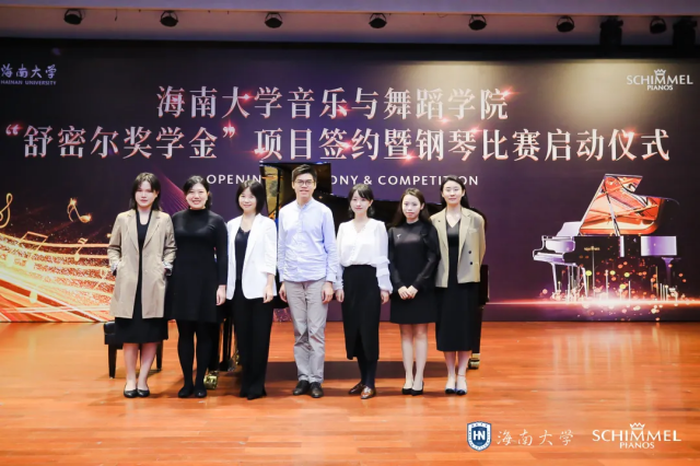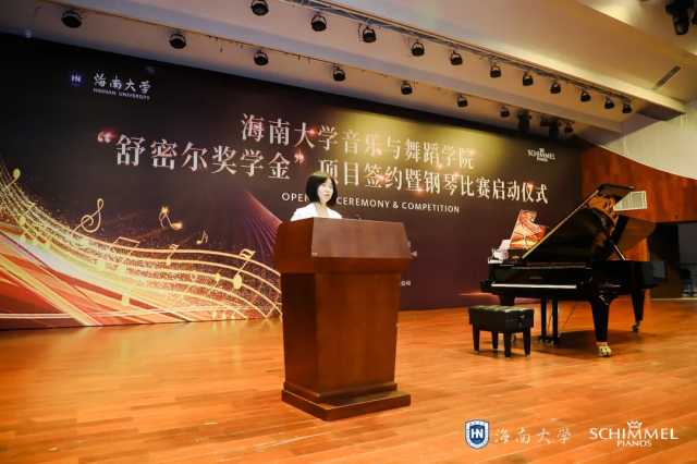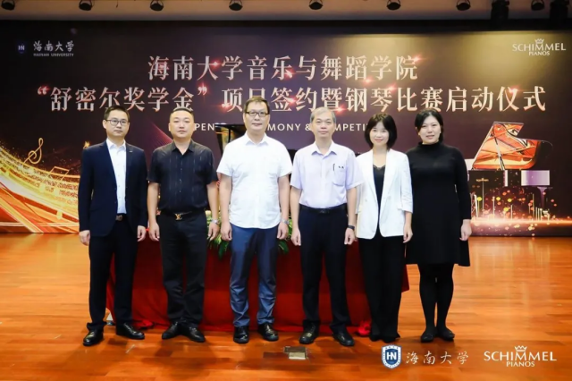 17日上午,海南大學教務處副處長謝輝凡、海南大學音樂與舞蹈學院黨委書記王強、舒密爾鋼琴(中國)有限公司總經理莫源波、區域經理曾勇、海口經濟學院南海音樂學院鋼琴系主任陳怡靜、海南科技職業大學器樂系主任何忱芳、海南南歌樂器有限公司總經理董紹南以及海大音樂與舞蹈學院鋼琴系師生共同出席了“舒密爾獎學金”比賽啟動儀式。