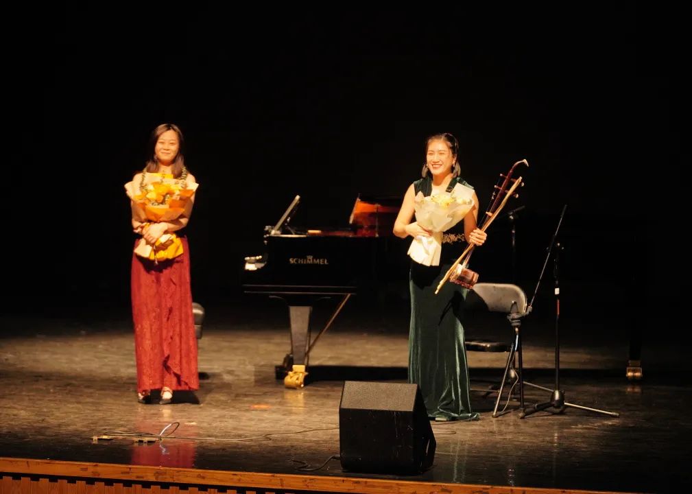 音樂會尾聲,方紫琪與二胡演奏家蘇肖婷帶來了一段完美合奏,結合中西文化,琴音和鳴,浪漫婉轉,在兩位表演者富有感染力的演繹中展現出了動人的效果。