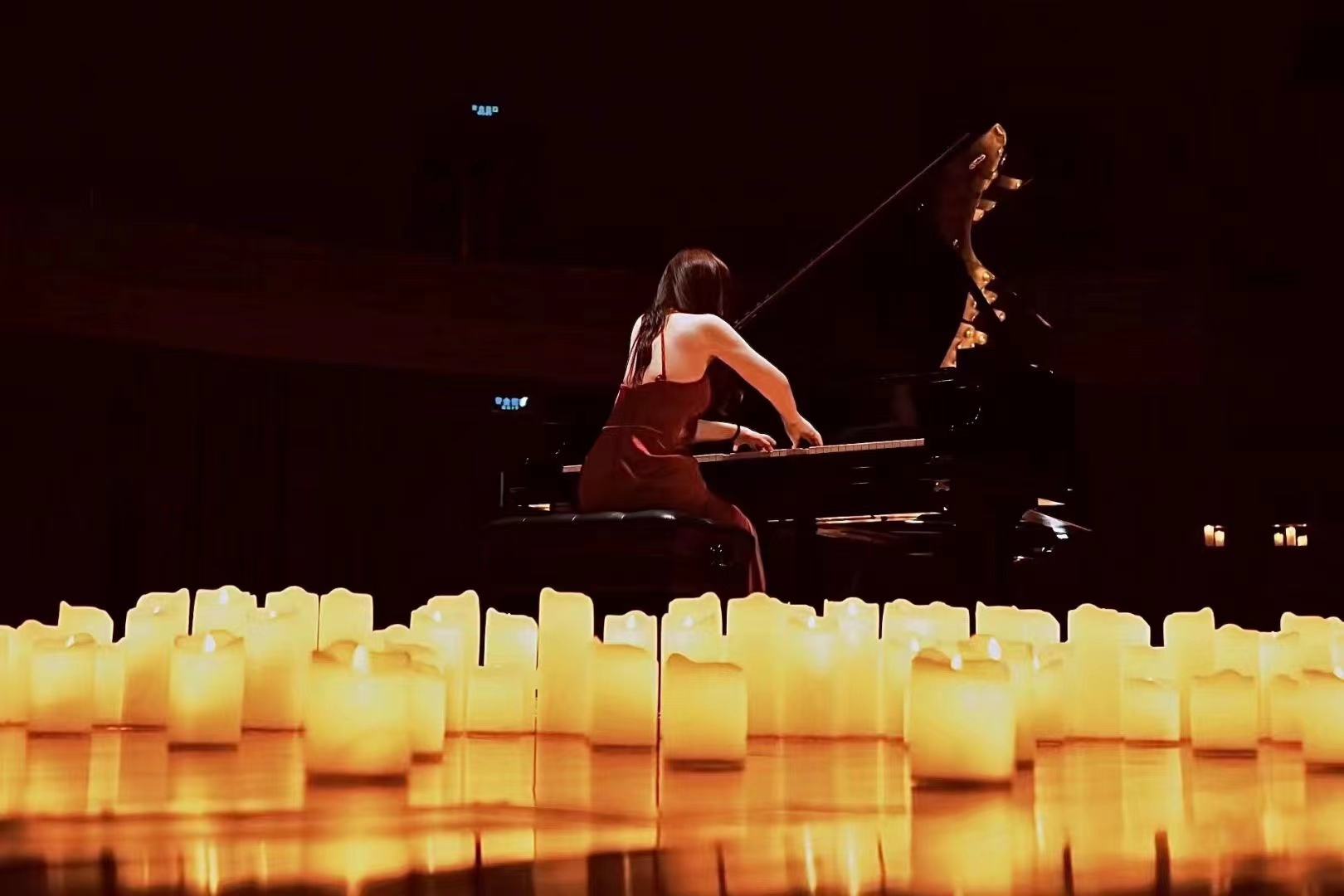 李佳老師在演奏曲目《月亮代表我的心》的時候,帶動全場合唱歌曲,隨著燭光的搖曳,深情溫柔的曲調讓這個夜晚顯得格外溫馨動人。