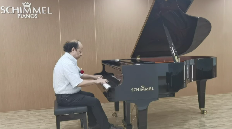 楊成剛教授現場彈奏舒密爾鋼琴,悠揚動聽的旋律讓開業的氣氛顯得更加美好。