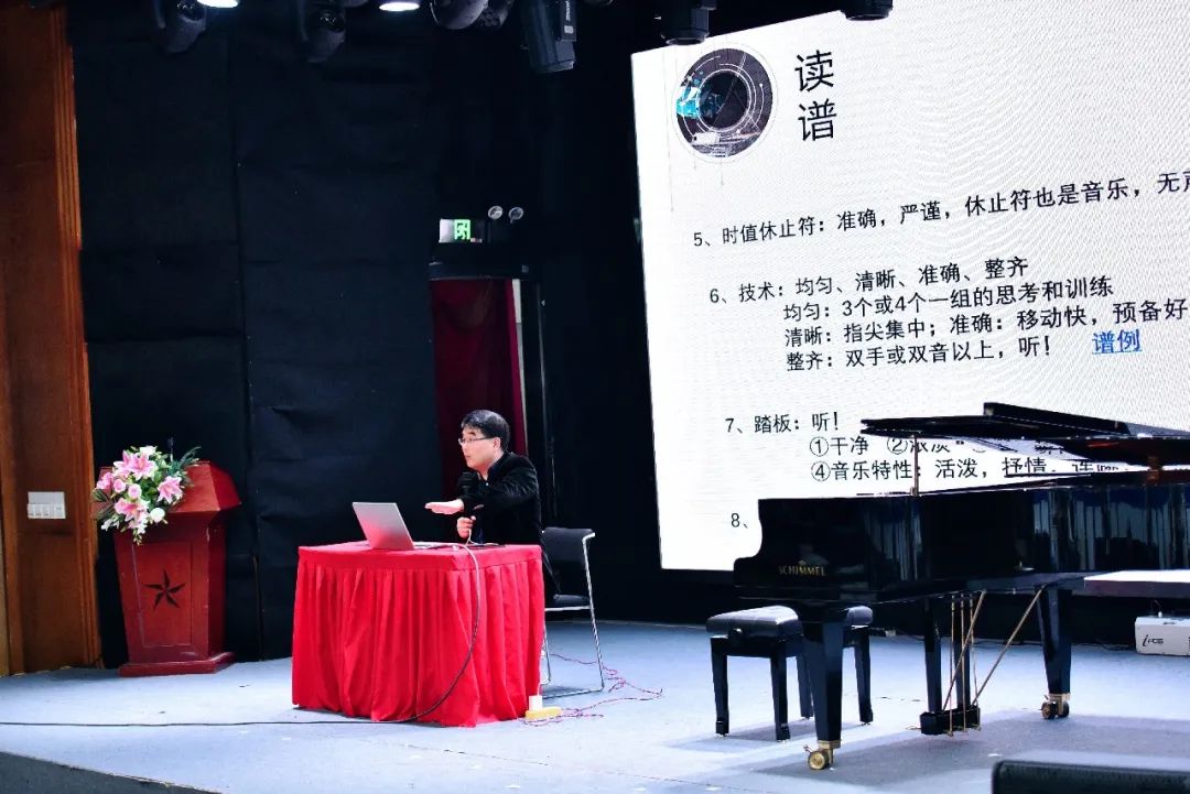 講座現場,冼勁松老師與各位教師進行了精彩的互動,冼勁松老師從樂感、讀譜、完整性與背譜、悅耳的聲音、上臺心理控制、曲目搭配等方面為各位老師做了分析和指導,對老師們的提問做了詳細的解答和演示,讓各位老師對于教學有了更加全面的把握。