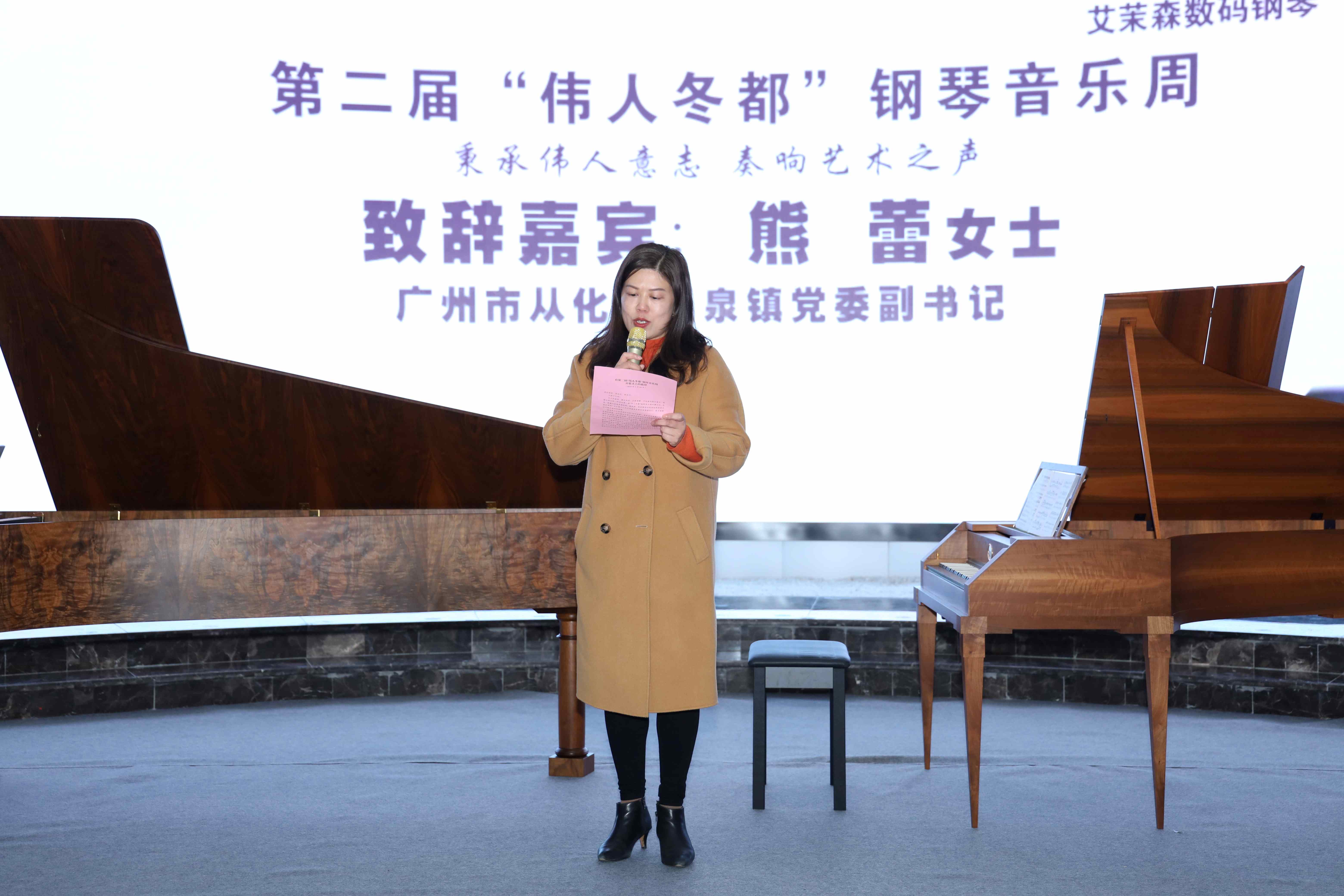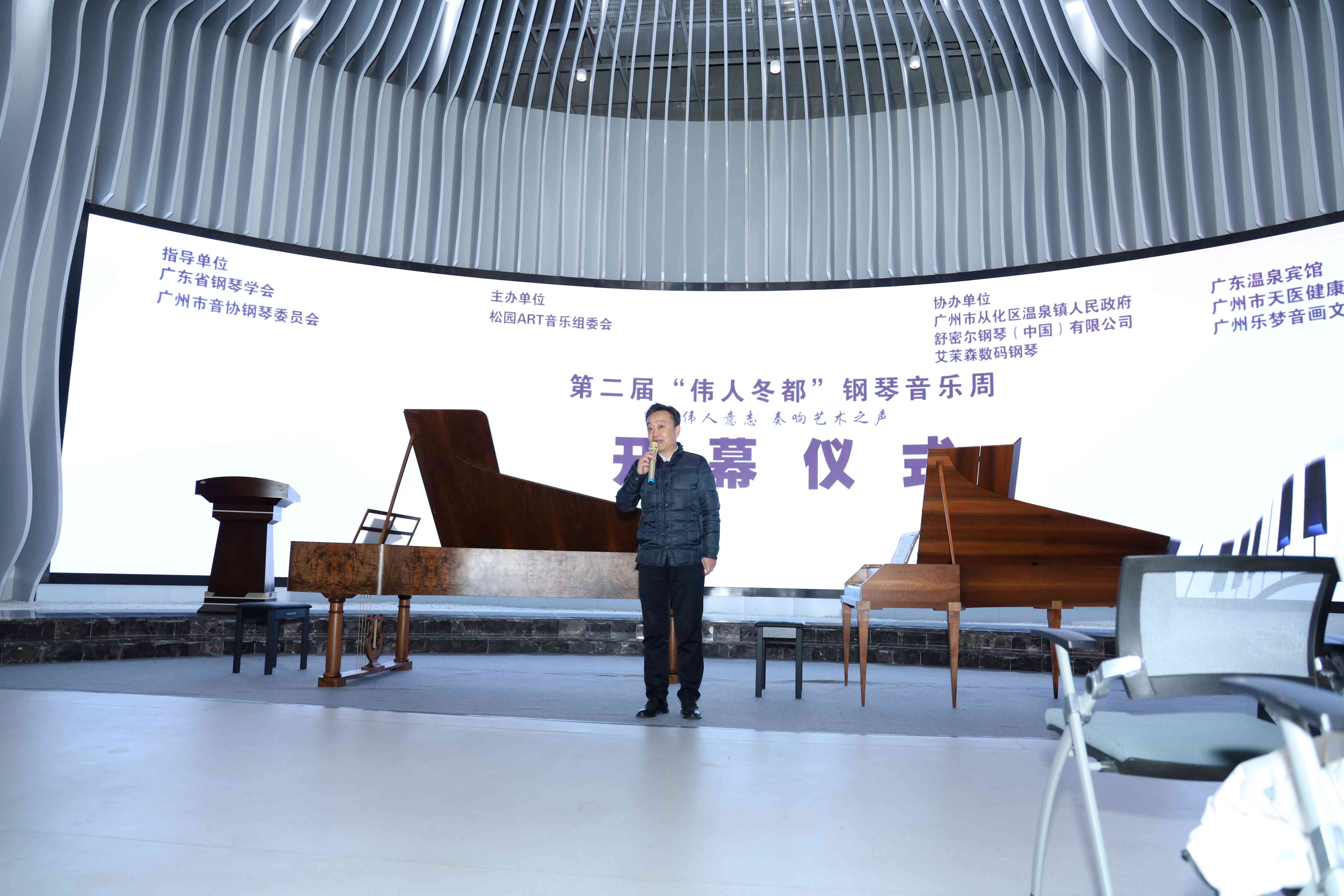 1月24日,第二屆“偉人冬都”鋼琴音樂周在實踐館舉行隆重的開幕儀式,廣州市從化區溫泉鎮黨委書記陳雷蕾女士、廣州市從化區溫泉鎮黨委副書記熊蕾女士,松園天醫處負責人邊強院長,廣東溫泉賓館副總經理陳志軍,中央音樂學院教授吳迎,中央音樂學院教授邵丹,中央音樂學院鋼琴系教授盛原,上海音樂學院鋼琴系教授孫韻,星海音樂學院鋼琴系教師張奕明,武漢音樂學院鋼琴系主科教師王子珺,星海音樂學院鋼琴系教授冼勁松,星海音樂學院鋼琴系教授、廣東省鋼琴學會會長黃天東,星海音樂學院附中鋼琴學科主任李思穎,華南農業大學藝術學院音樂系主任朱虹,廣州大學音樂舞蹈學院藝術實踐中心主任唐馨,廣州大學附屬藝術學校鋼琴專業學科主任方一鳴,星海音樂學院鋼琴系教授陳丹,星海音樂學院鋼琴系副教授金萊,廣東外語藝術職業學院鋼琴副教授孫薇,星海音樂學院碩士生導師陳伯全,廣州大學音樂舞蹈學院鋼琴專業主課教師姚卉,廣州大學附屬藝術學校鋼琴教師易帥,星海音樂學院附中鋼琴教師姚宛藝,廣東舞蹈戲劇職業學院鋼琴專業教師盧劍,星海音樂學院作曲系鋼琴教師陳曉琦,星海音樂學院協作鋼琴與室內樂教研室教師李陽,舒密爾鋼琴(中國)有限公司副總經理黃東等嘉賓蒞臨參加本次開幕儀式。