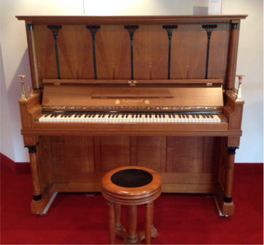 這臺琴高約1340mm,音色豐富,觸感敏銳,用料考究。造型呈現(xiàn)畢德麥雅風(fēng)格,在保留古典時(shí)期的奢華線條的同時(shí),完美地融合了簡約與精致,穩(wěn)健而不失精巧,這種獨(dú)樹一幟的藝術(shù)品味,淋漓盡致而又恰如其分地體現(xiàn)了當(dāng)時(shí)社會對如花美眷,琴瑟和諧的生活情調(diào)的向往和追求。