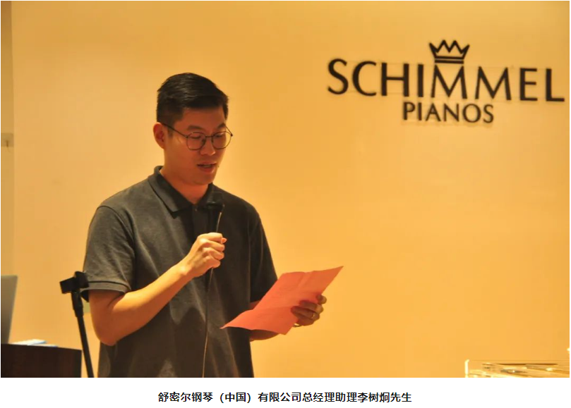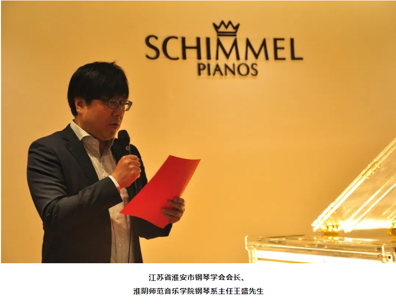 啟動儀式上,江蘇省淮安市鋼琴學(xué)會會長、淮陰師范音樂學(xué)院鋼琴系主任王盛先生和舒密爾鋼琴(中國)有限公司總經(jīng)理助理李樹炯先生分別上臺介紹大賽并發(fā)表講話,正式介紹本次大賽并對選手做出鼓勵。